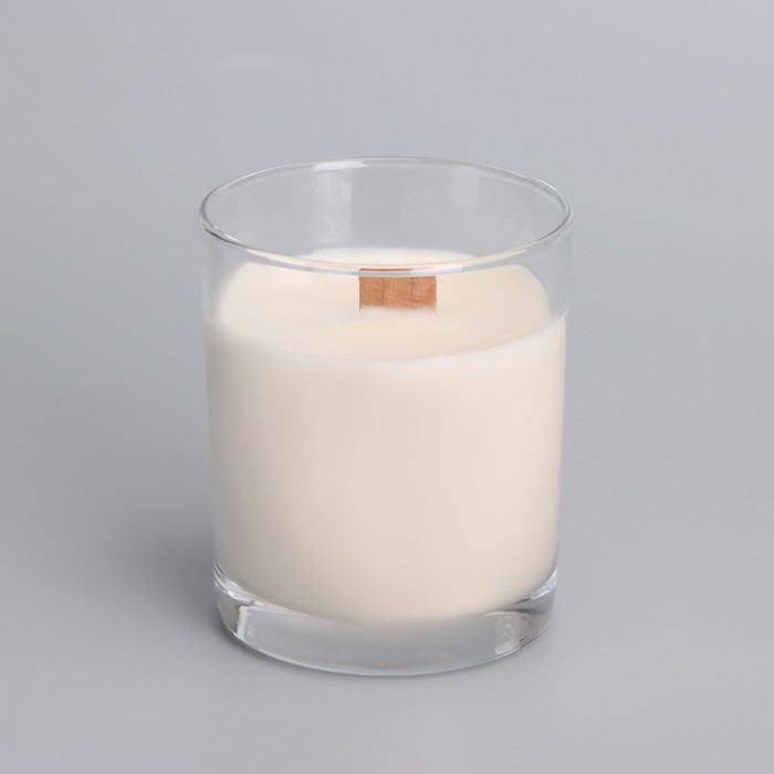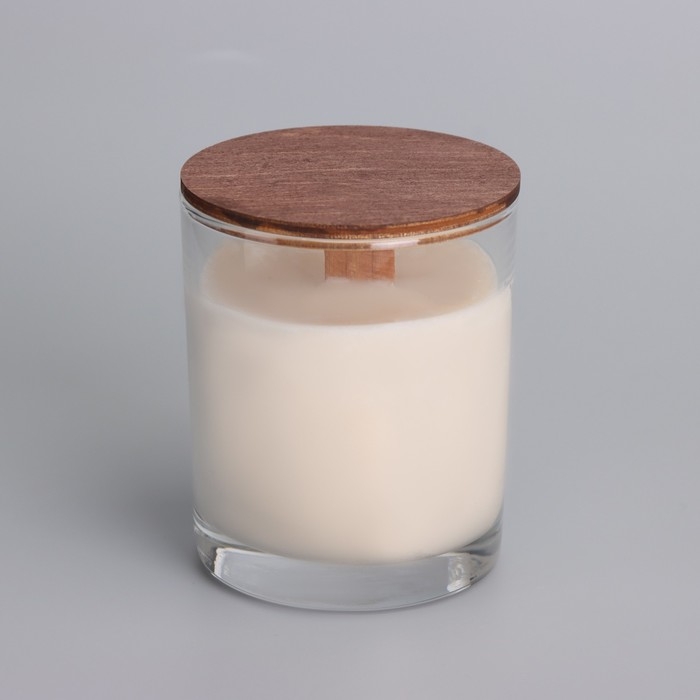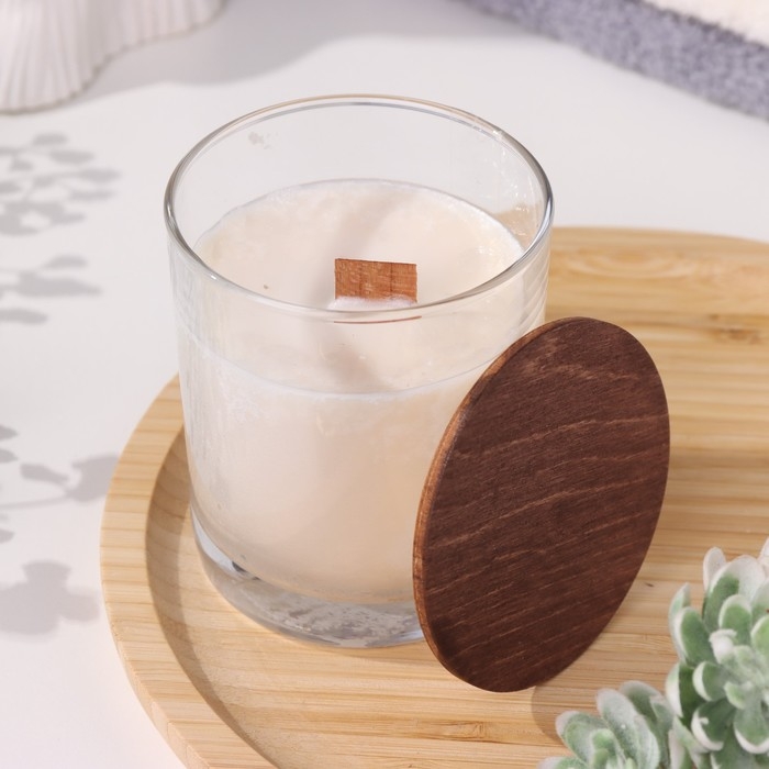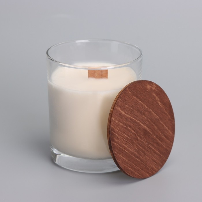 Свеча из соевого воска в стакане с деревянным фитилем и крышкой "Сочное манго", 110 гр