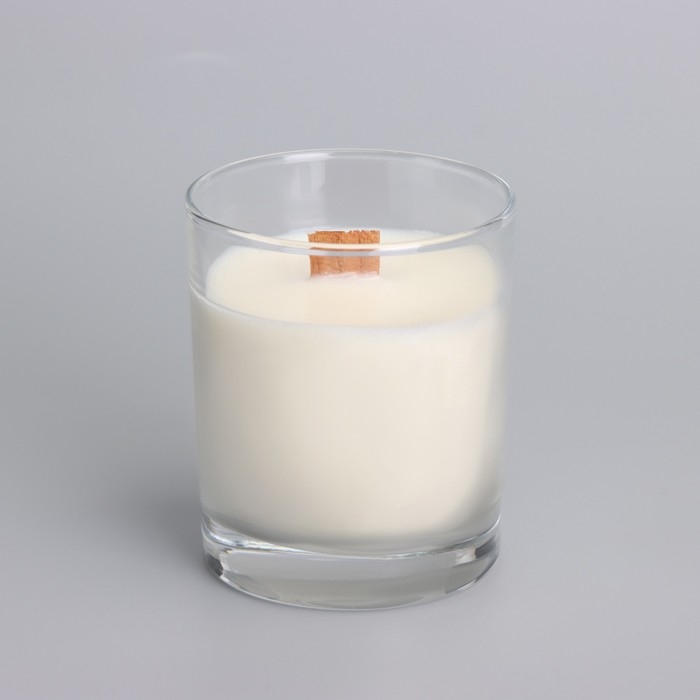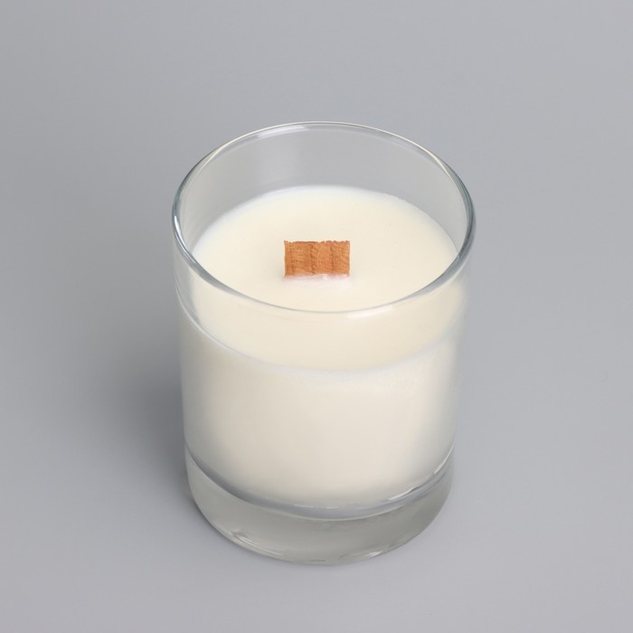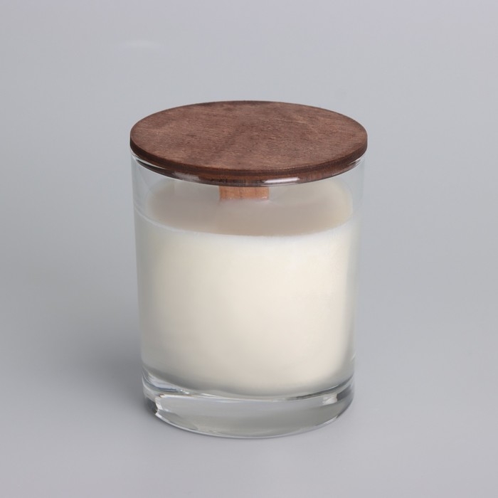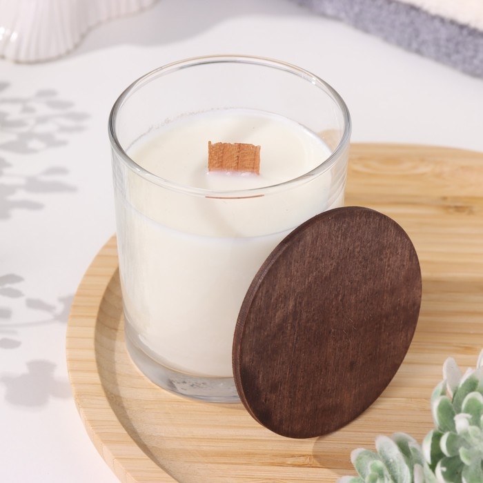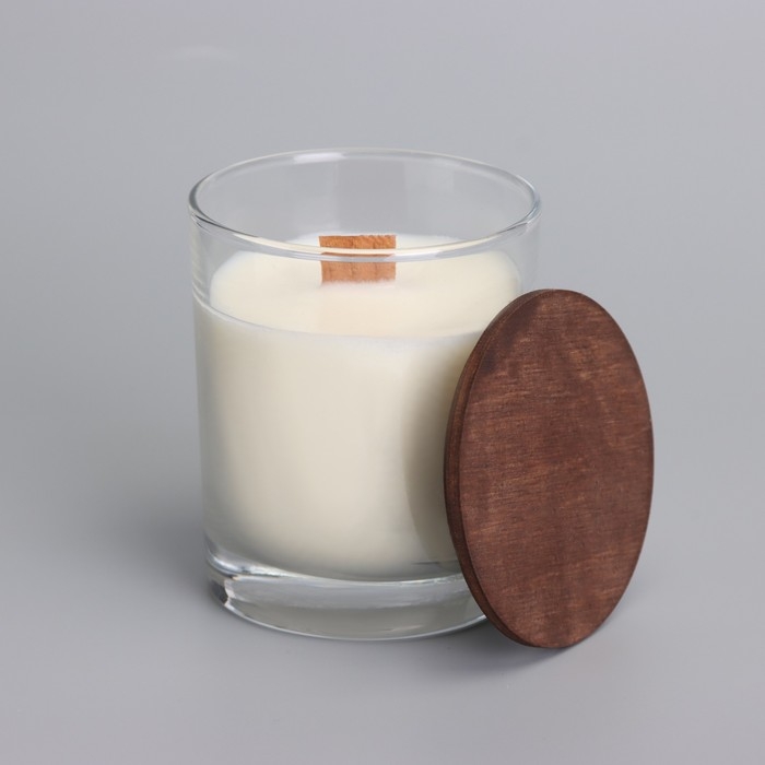 Свеча из соевого воска в стакане с деревянным фитилем и крышкой "Ванильный капучино", 110 гр