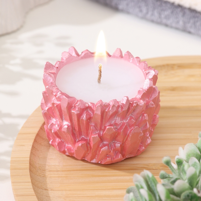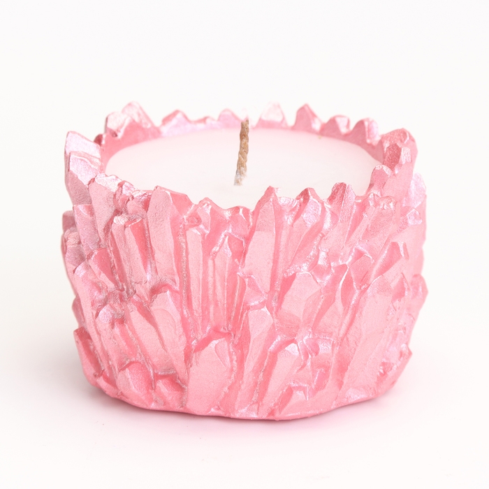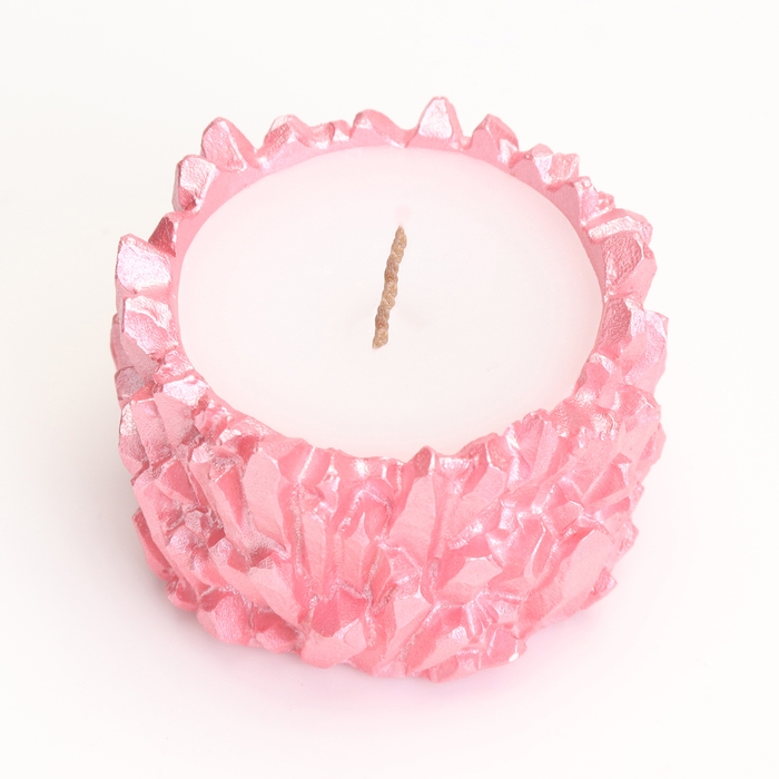 Свеча "Кристаллы" в подсвечнике из гипса,6х4см, розовый