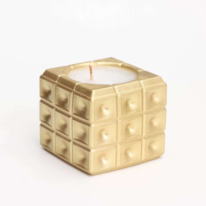 Свеча "Квадрат в точку" в подсвечнике из гипса, 7,5х6,5см, золото