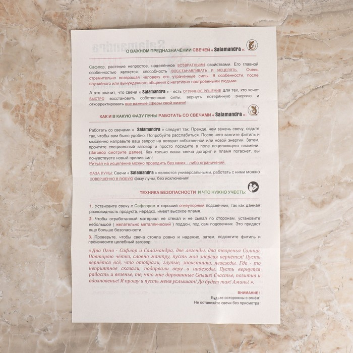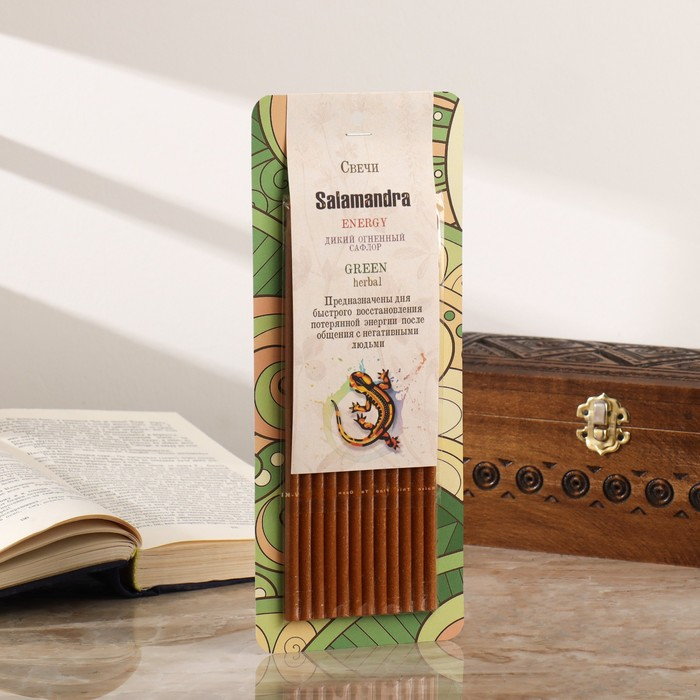 Свеча магическая медовая с диким сафлором для восстановления энергии «Salamandra», 12 штук