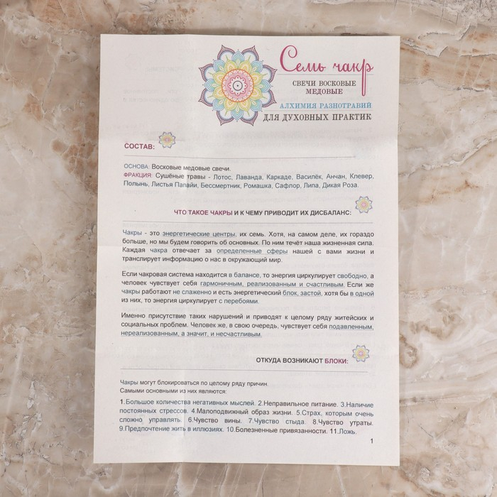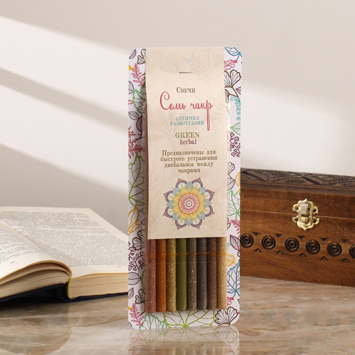 Свеча магическая медовая с травами для проработки чакр "7 чакр", 8 штук