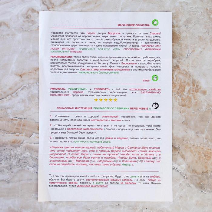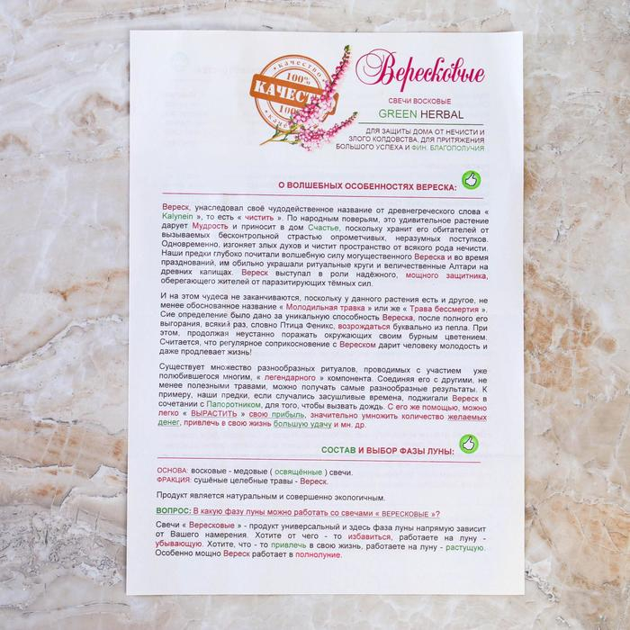 Свеча магическая медовая с вереском для привлечения удачи «Вересковые», 12 штук