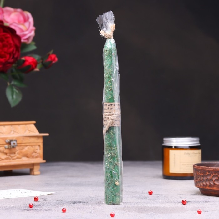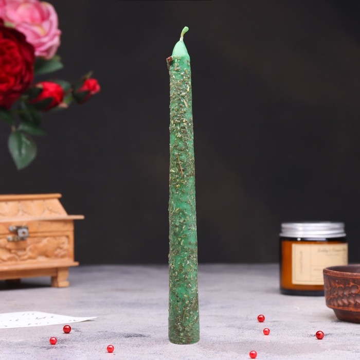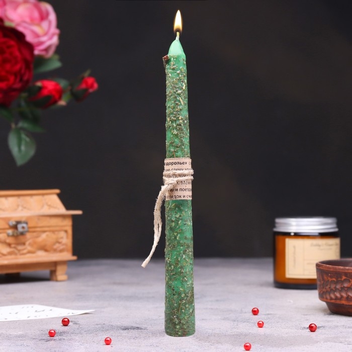 Свеча магическая "На здоровье" с травой, зелёная, 20см