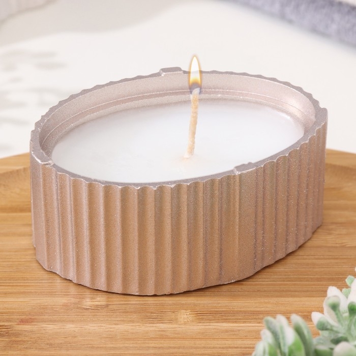 Свеча "Овал" в подсвечнике с узкими гранями, 9х6,5х4см,шампань