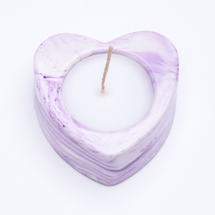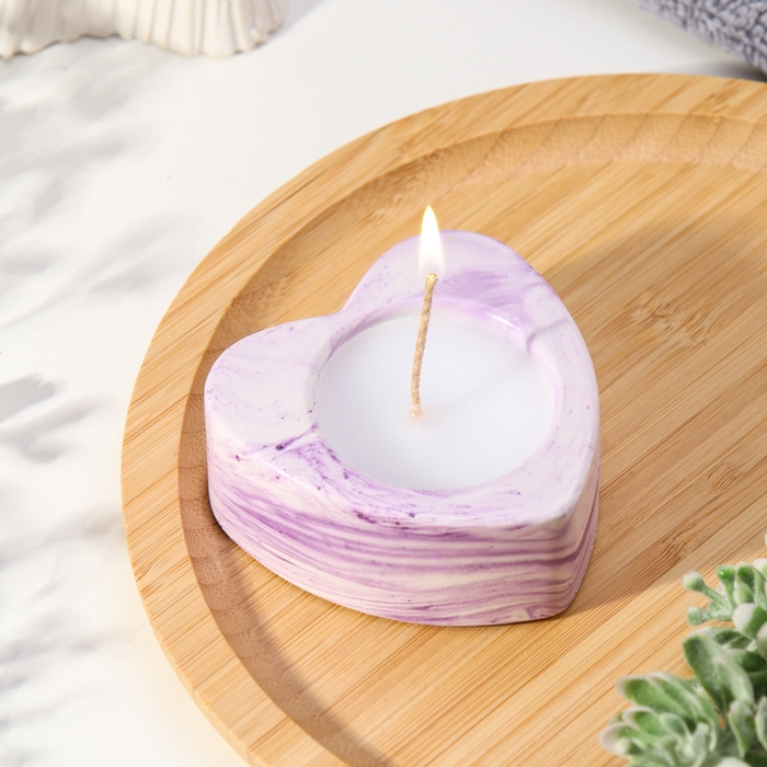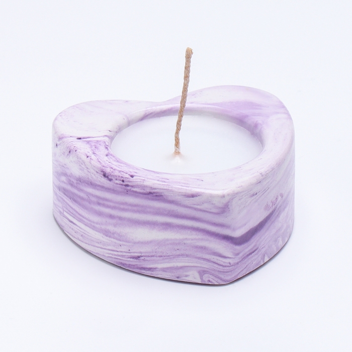 Свеча "Сердце малое. Мрамор" в подсвечнике из гипса, 7х3см,мрамор с фиолетовыми полосками