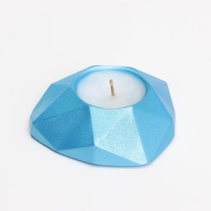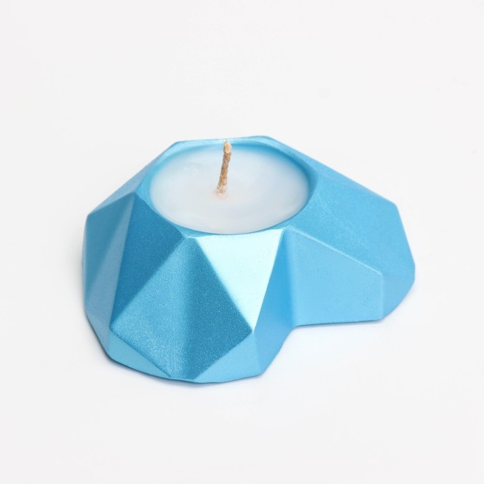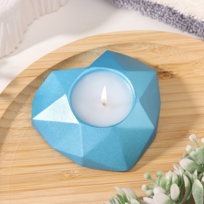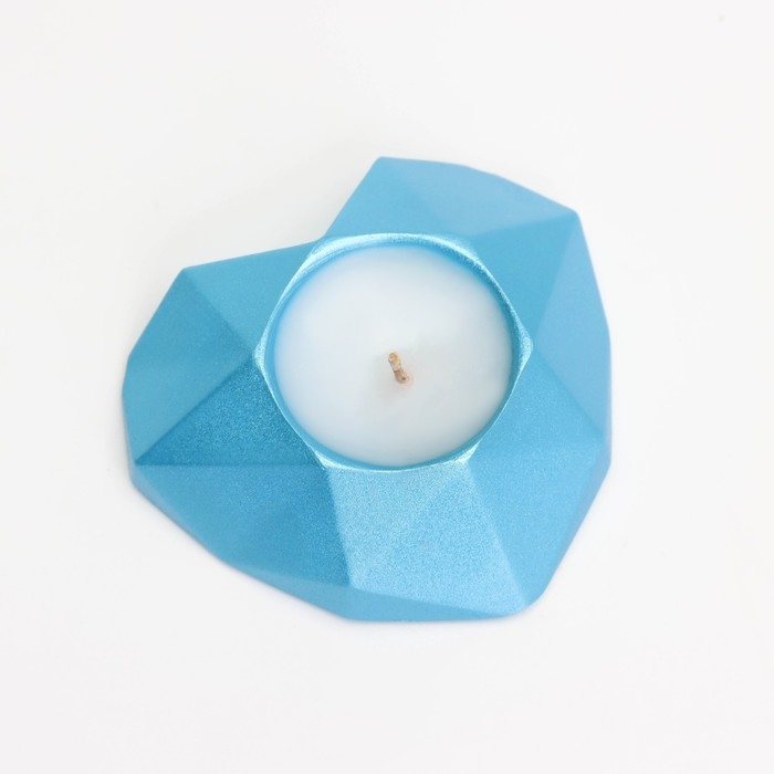 Свеча "Сердце. Мрамор" в подсвечнике из гипса с гранями, 8х7,5х2,5см,голубой