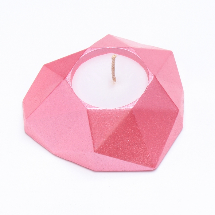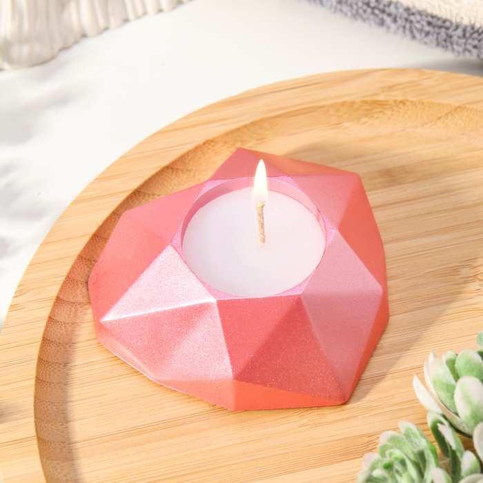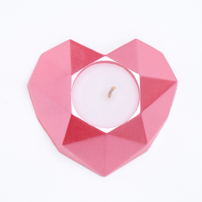 Свеча "Сердце. Мрамор" в подсвечнике из гипса с гранями, 8х7,5х2,5см,розовый