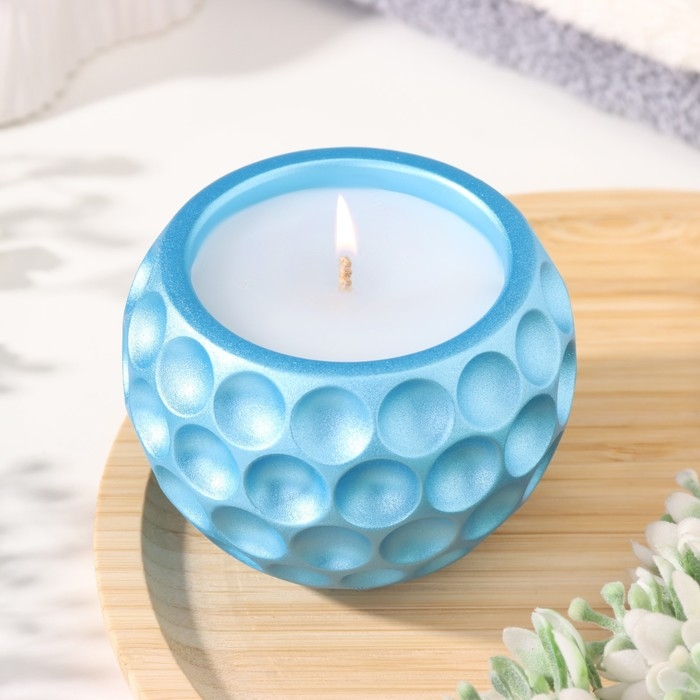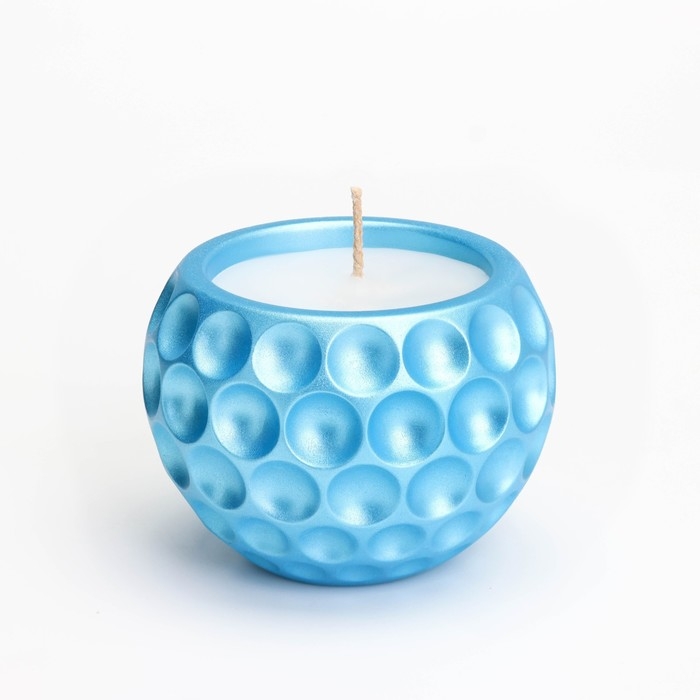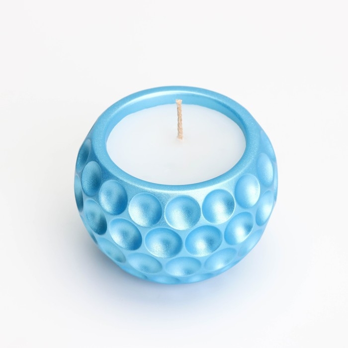 Свеча "Шар в точку" в подсвечнике из гипса, 8х6см, голубой
