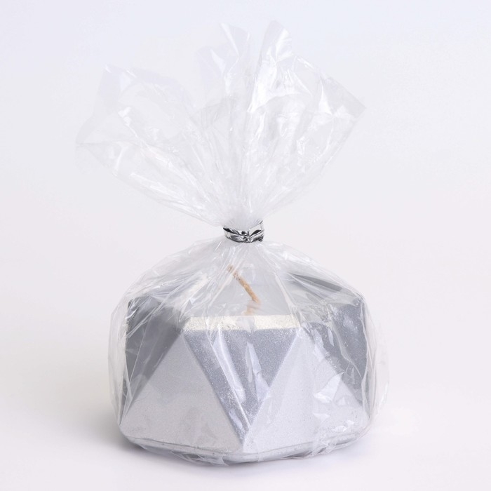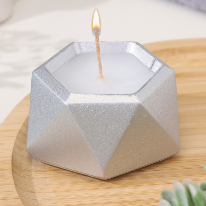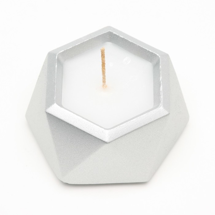 Свеча "Шестиугольник. Мрамор" в подсвечнике из гипса малый,7х3,5см,серебро