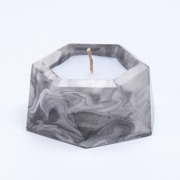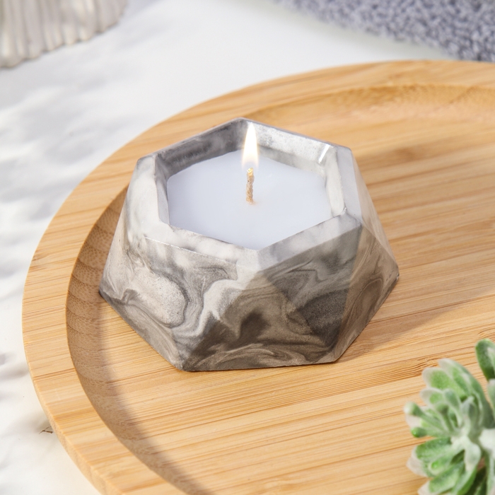 Свеча "Шестиугольник.Мрамор"в подсвечнике из гипса малый,7х3,5см,мрамор с чёрными полосками