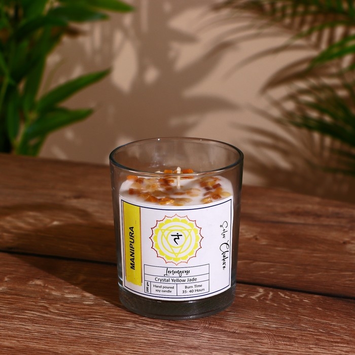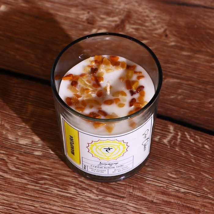 Свеча соевая "7 чакр" с кристаллами, 200 гр, Манипура