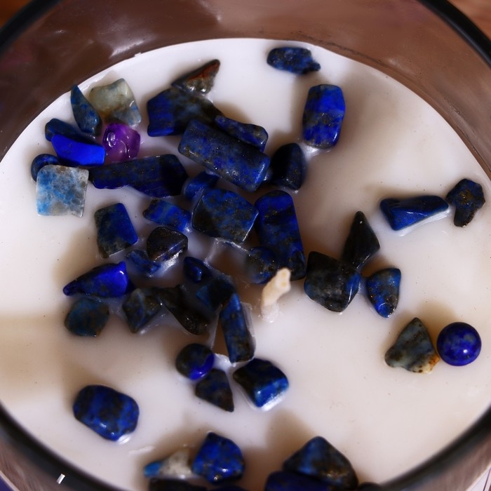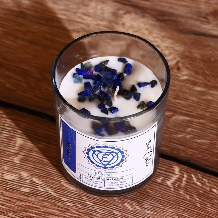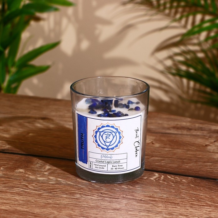 Свеча соевая "7 чакр" с кристаллами, 200 гр, Вишудха