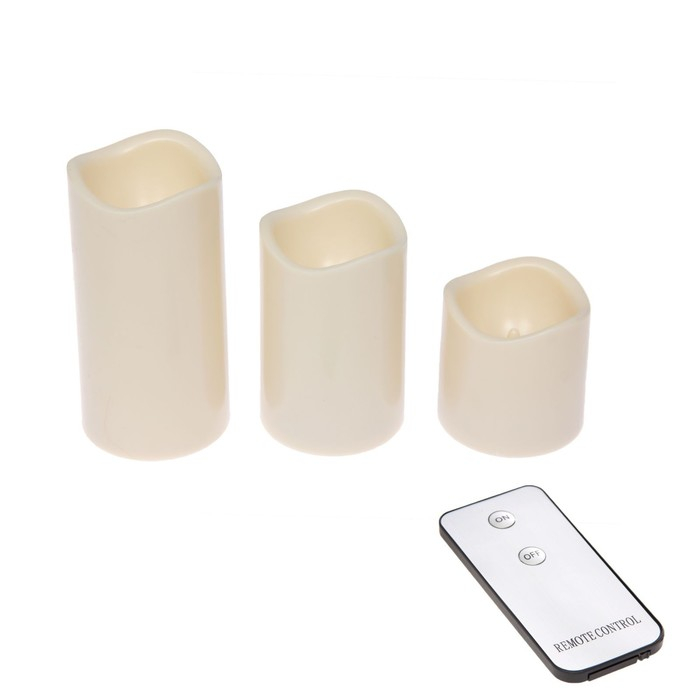 Свеча светодиодная «Пламя», с пультом, набор 3 шт.