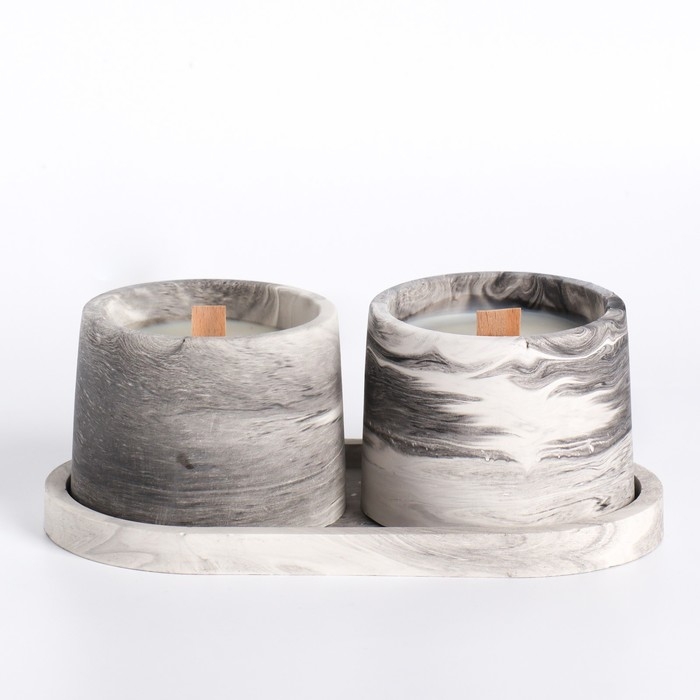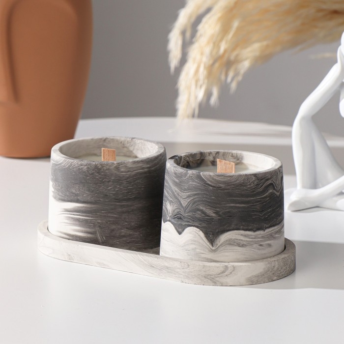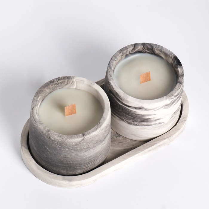 Свеча в бетоне на подставке "Лофт", соевый воск, деревянный фитиль, черно-белая