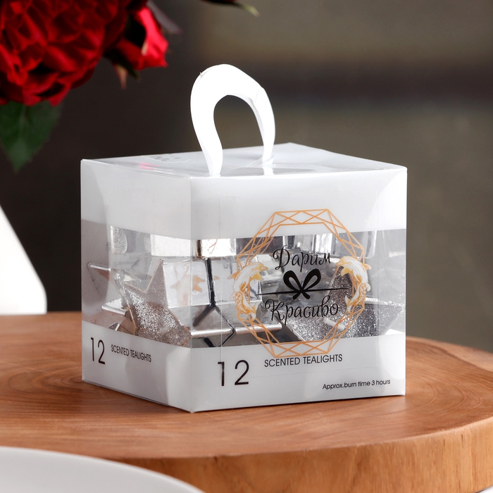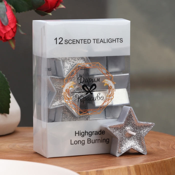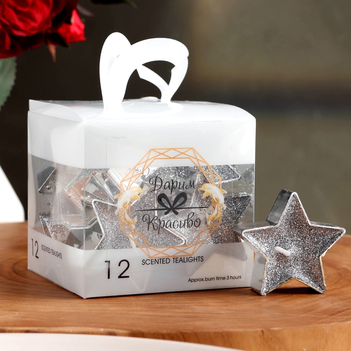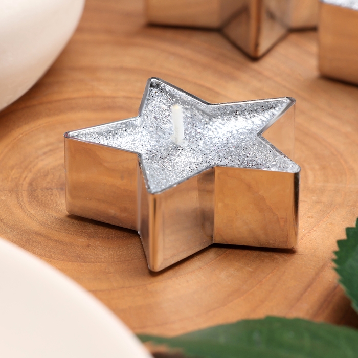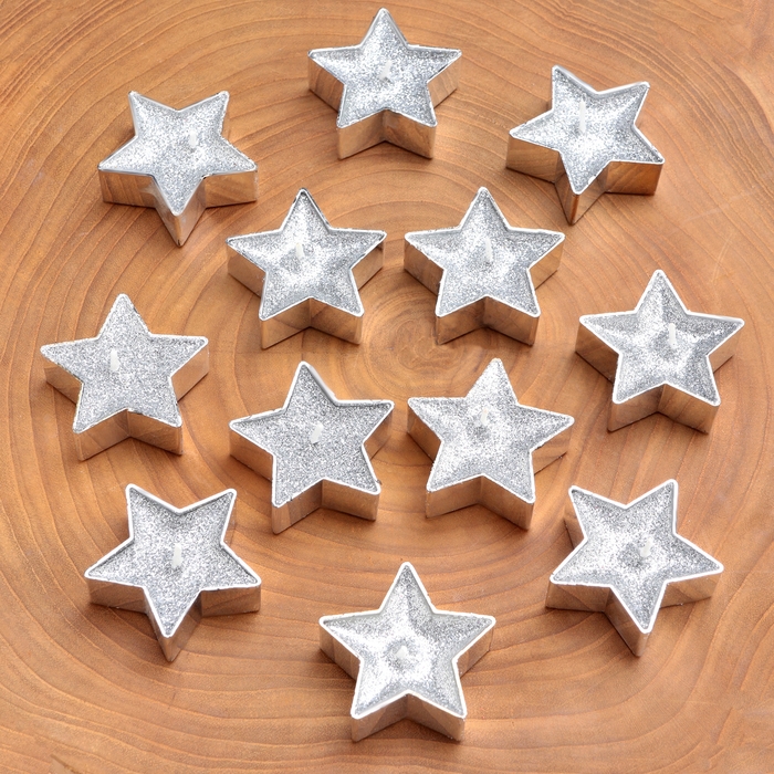 Свеча в гильзе "Звёздочка", набор 12 шт, серебряная блёстка