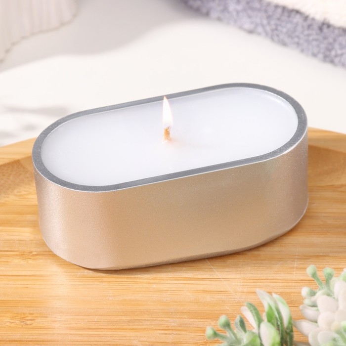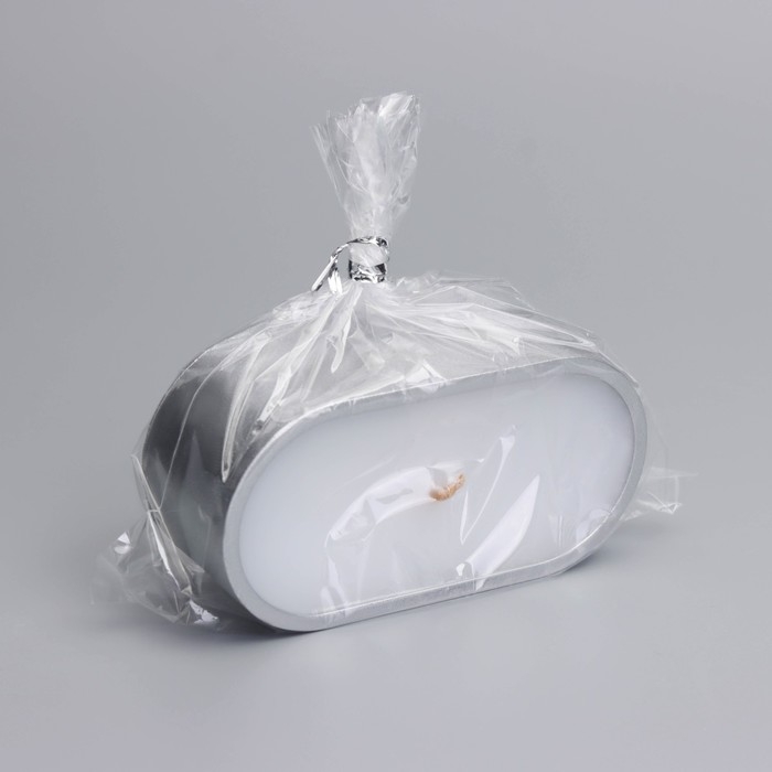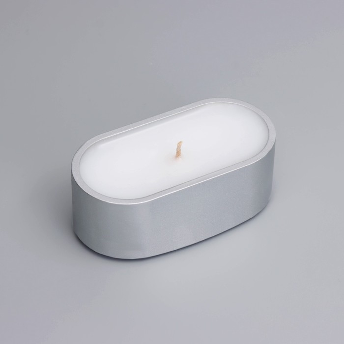 Свеча в овальном подсвечнике из гипса,9,5х4,7х3см,серебро