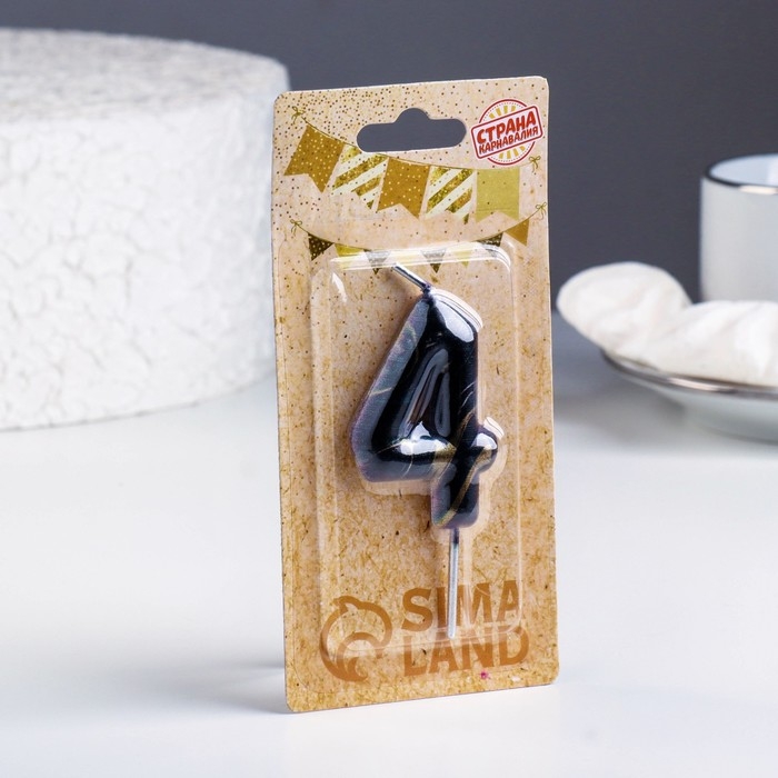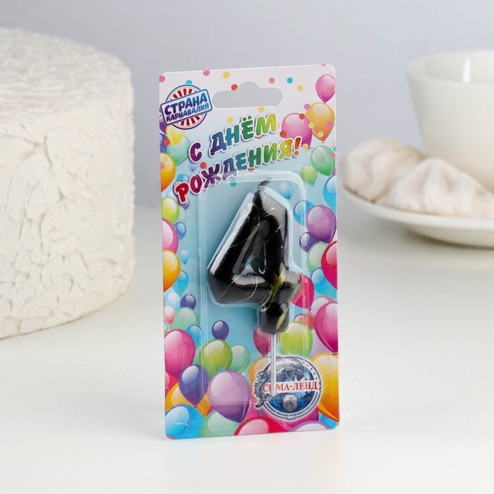 Свеча в торт "Черный мрамор", цифра "4", 5,5 см