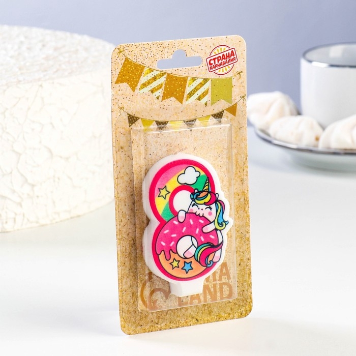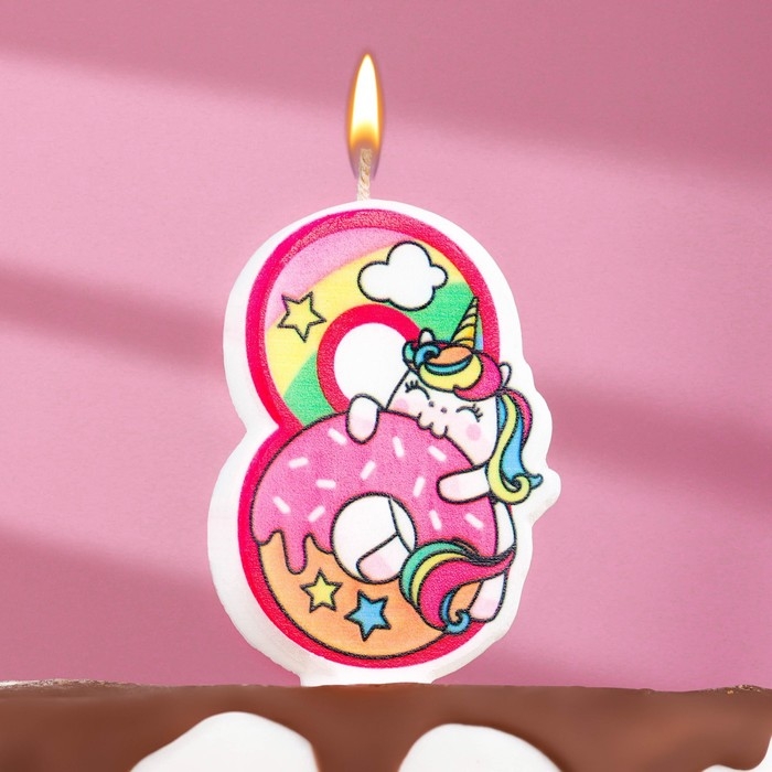 Свеча в торт "Единорог с шариком", цифра 8, розовый, 6,5 см