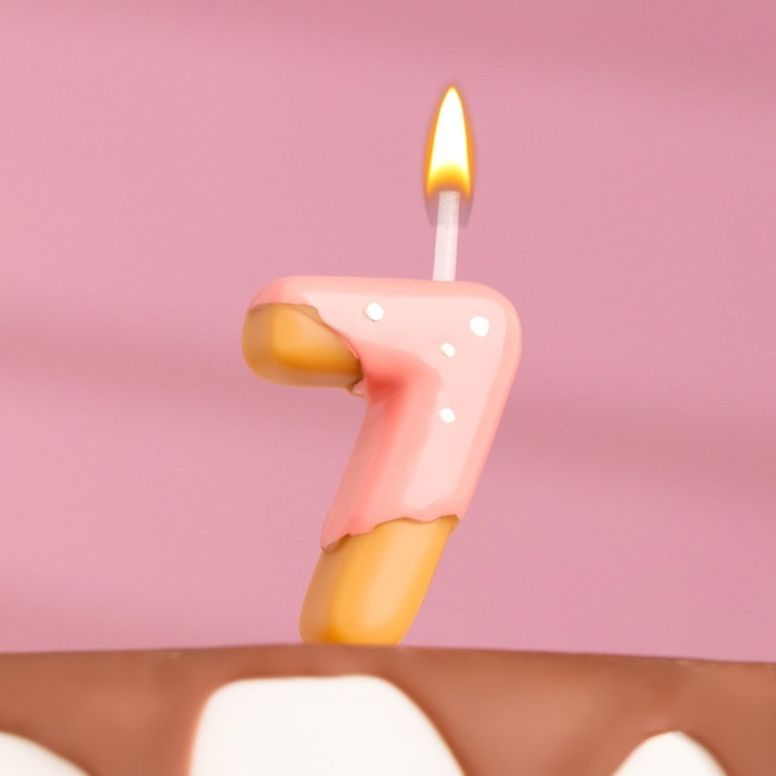 Свеча в торт "Клубничная глазурь", цифра "7", розовая, 3,8 см