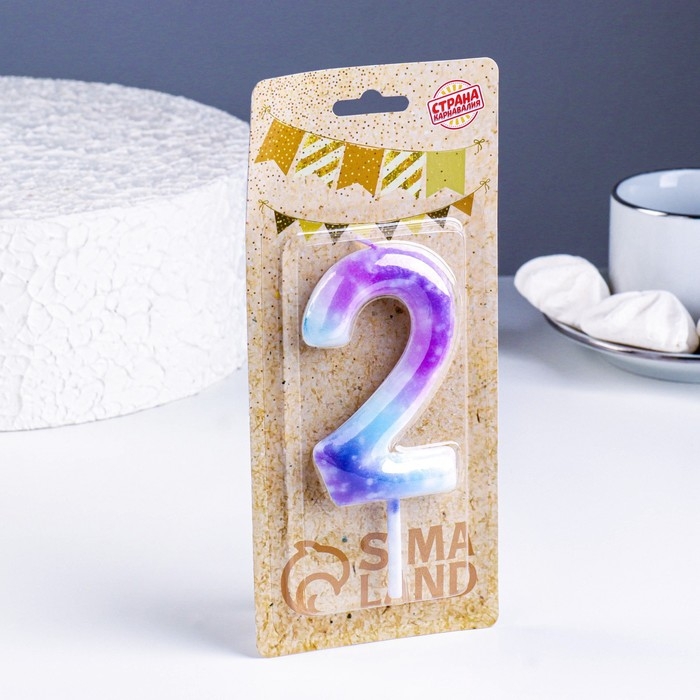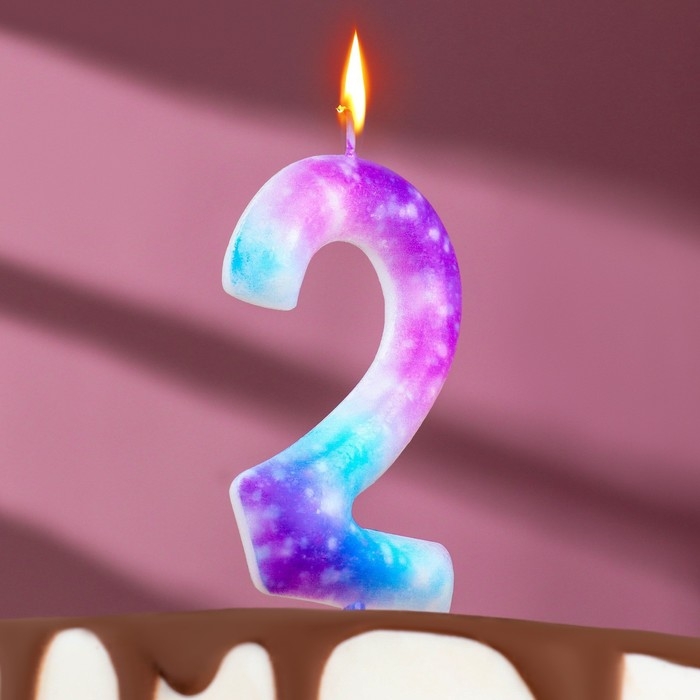 Свеча в торт на шпажке "Галактика", цифра 2, 9 см, ГИГАНТ