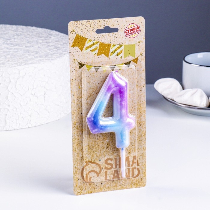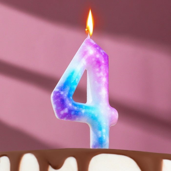 Свеча в торт на шпажке "Галактика", цифра 4, 9 см, ГИГАНТ