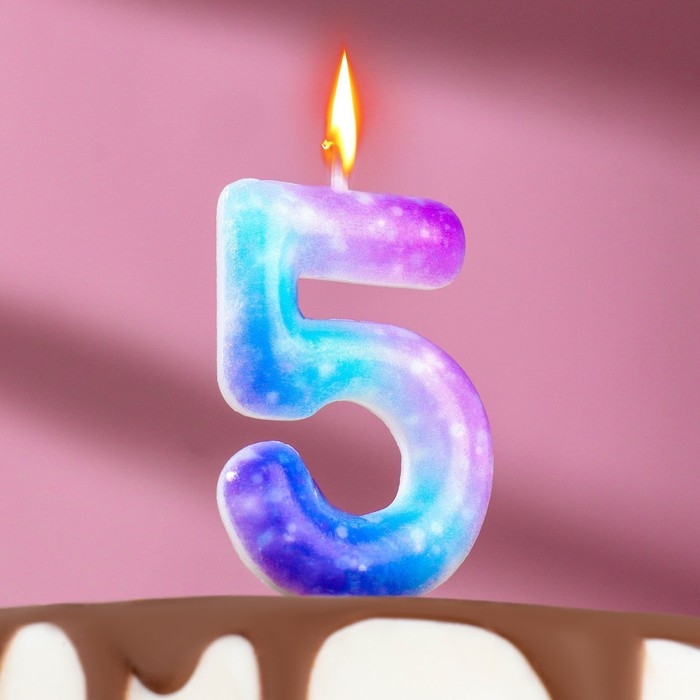 Свеча в торт на шпажке "Галактика", цифра 5, 5,5 см