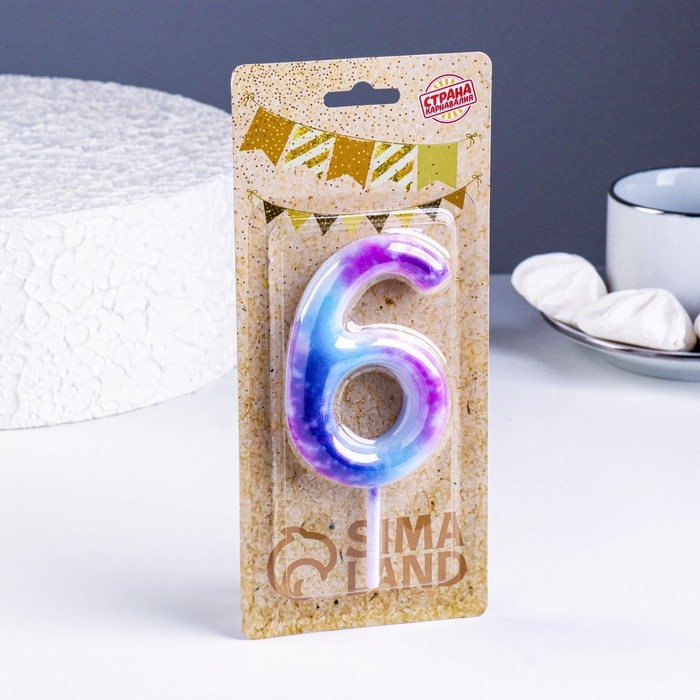 Свеча в торт на шпажке "Галактика", цифра 6, 9 см, ГИГАНТ