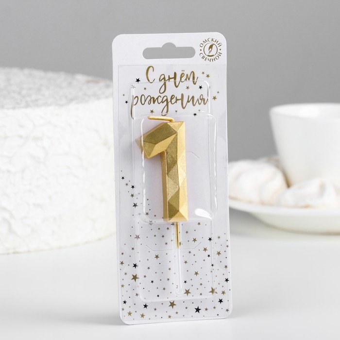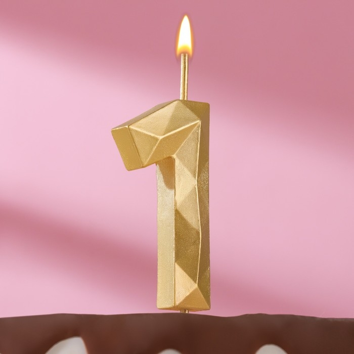 Свеча в торт на шпажке "Многогранник", цифра 1, 7 см, золото