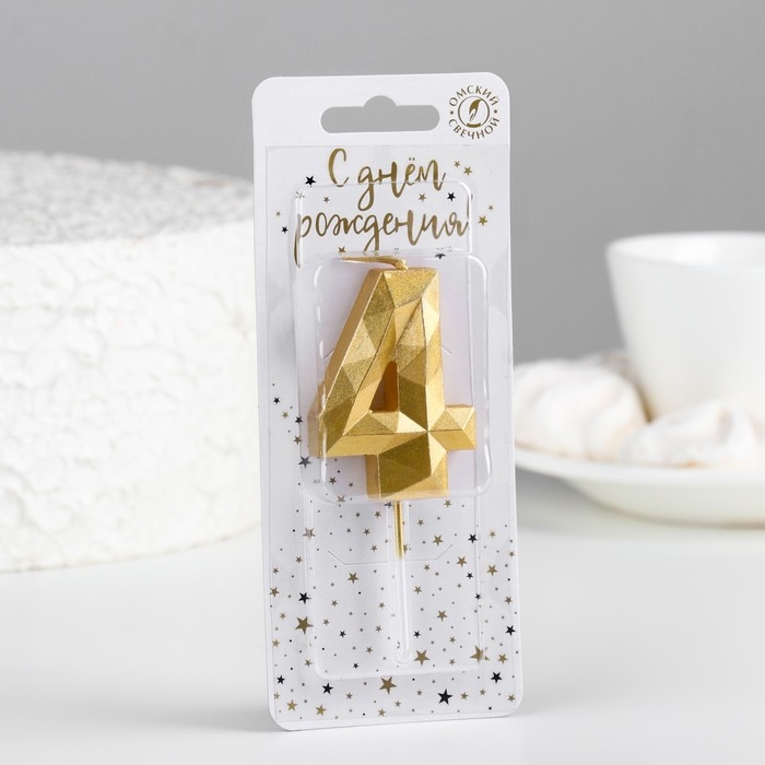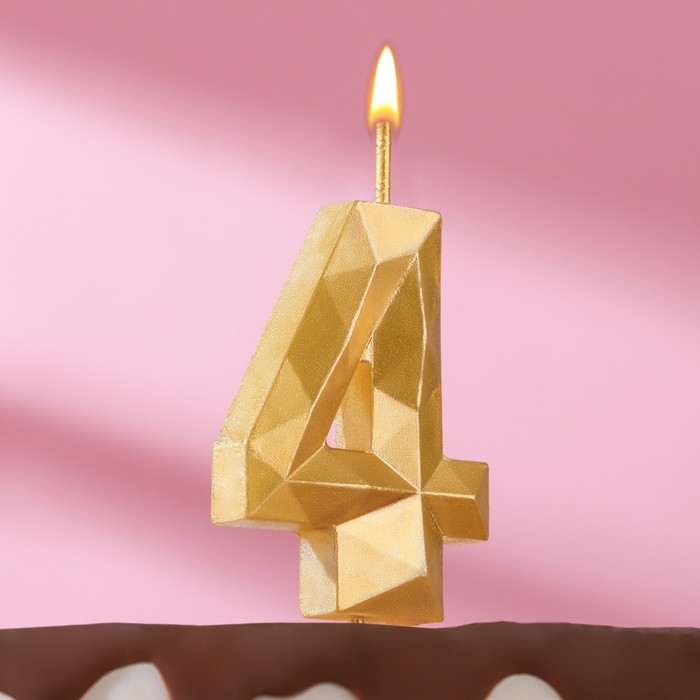 Свеча в торт на шпажке "Многогранник", цифра 4, 7 см, золото