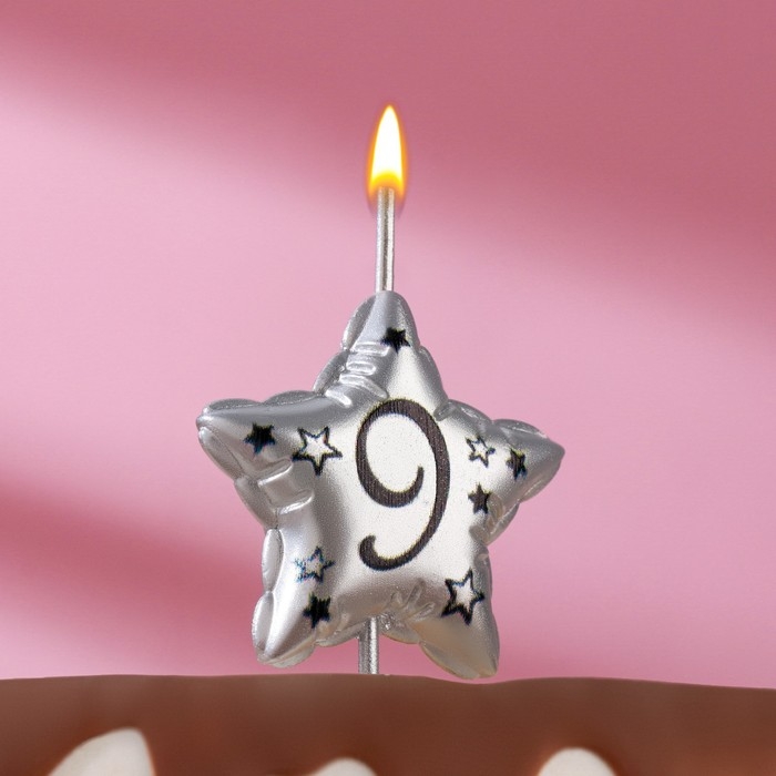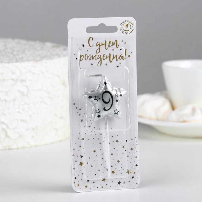 Свеча в торт на шпажке "Воздушная звездочка", цифра 9, 3,5 см, серебро
