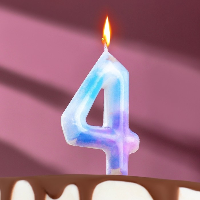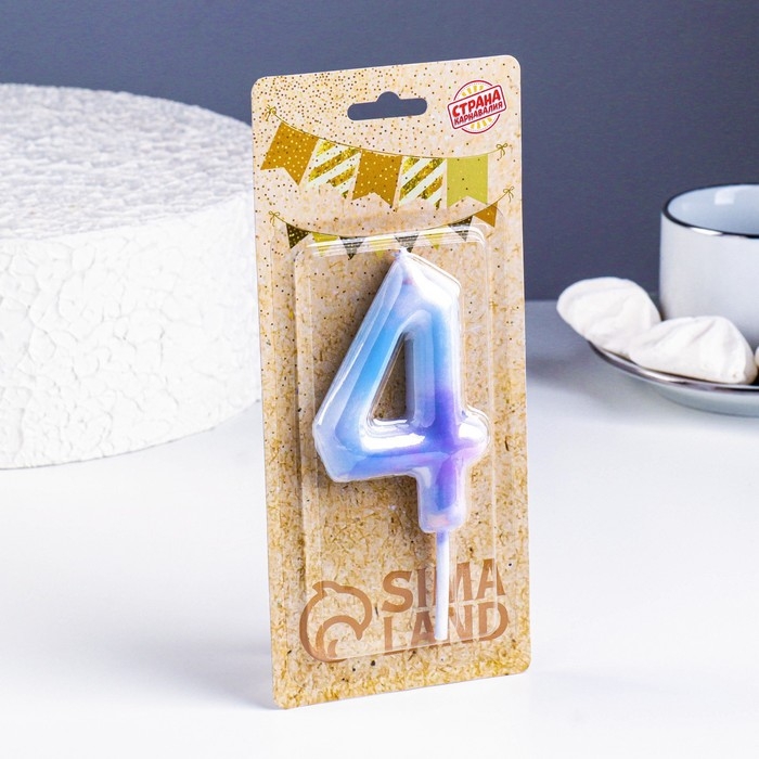 Свеча в торт "Белый мрамор", цифра "4", ГИГАНТ, 9 см