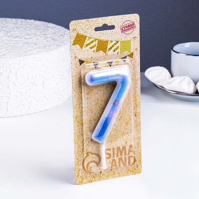 Свеча в торт "Белый мрамор", цифра "7", ГИГАНТ, 9 см