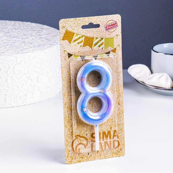 Свеча в торт на шпажке "Звездопад", цифра 8, 9 см, ГИГАНТ