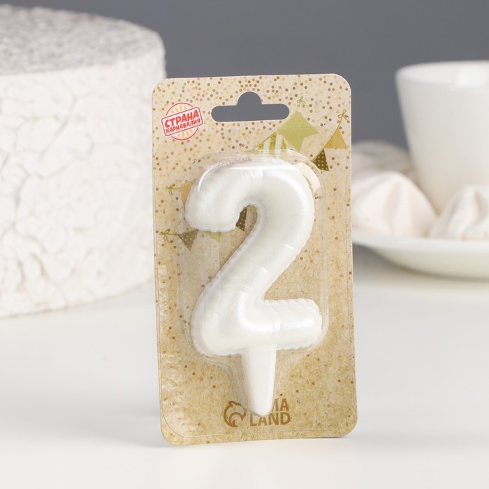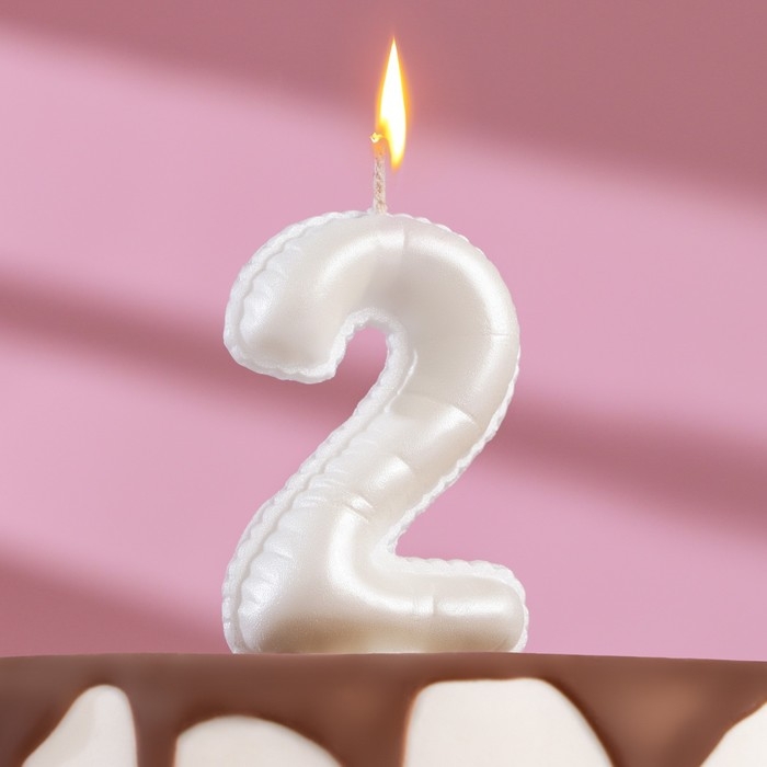 Свеча в торт "Шары", цифра "2", жемчужный, 5,5 см