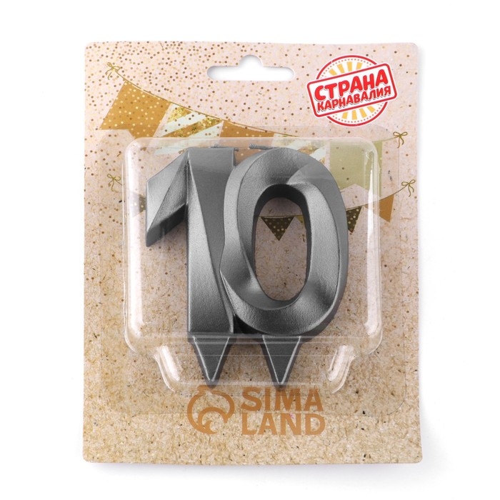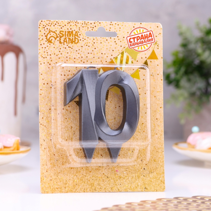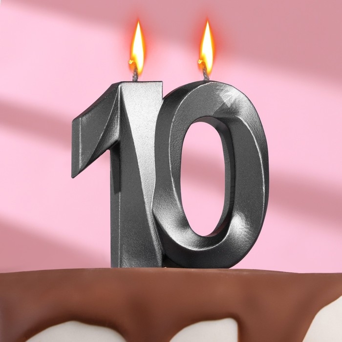 Свеча в торт юбилейная "Грань", ,цифра 10, , графит, 6,5 см