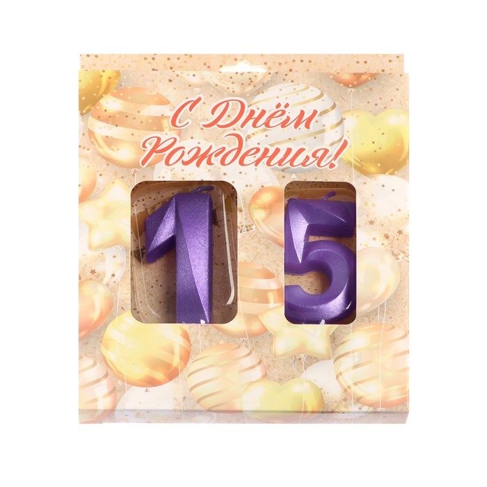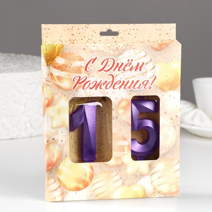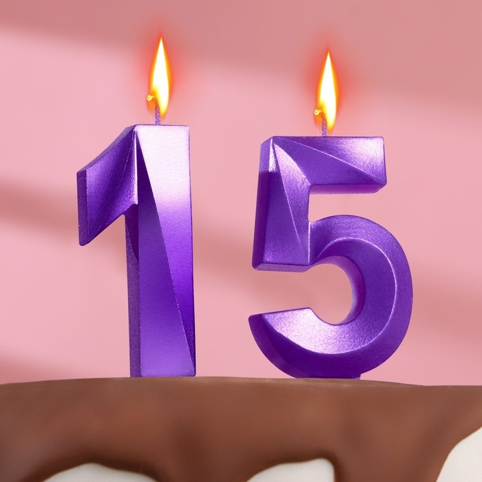 Свеча в торт юбилейная "Грань" (набор 2 в 1), цифра 15 / 51, фиолетовый металлик, 6,5 см