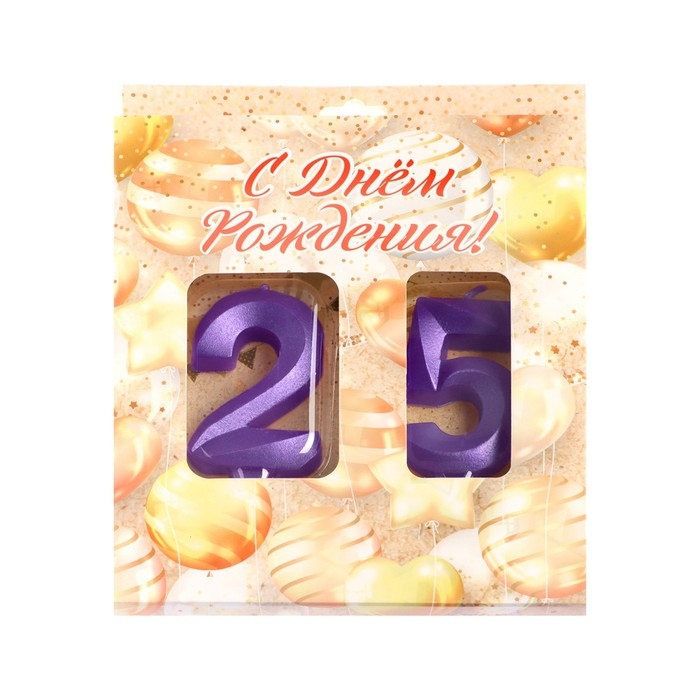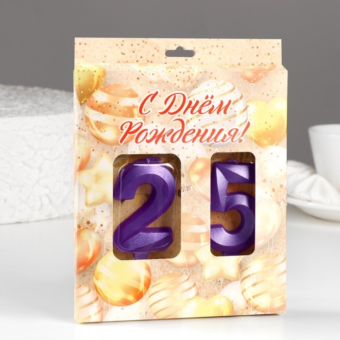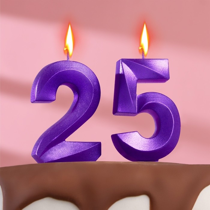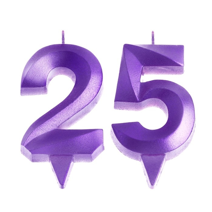Свеча в торт юбилейная "Грань" (набор 2 в 1), цифра 25 / 52, фиолетовый металлик, 6,5 см