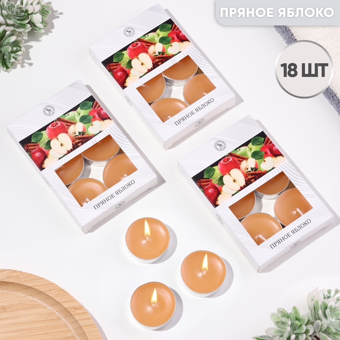 Свечи чайные ароматизированные "Пряное яблоко" в подарочных коробках, 18 шт