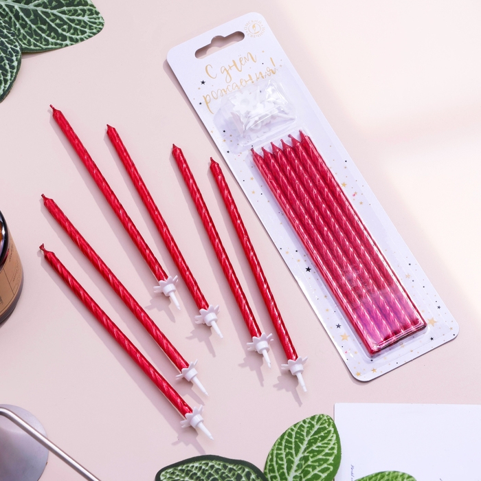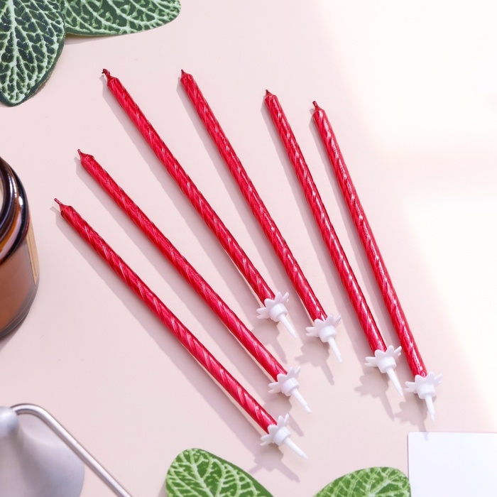Свечи для торта "Классические" с подставкой, 13 см, 6 шт, рубиновые