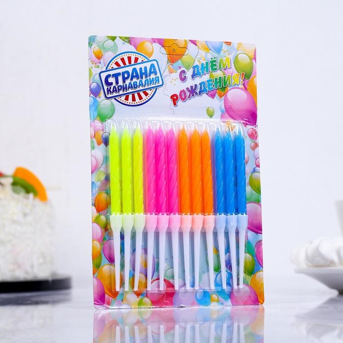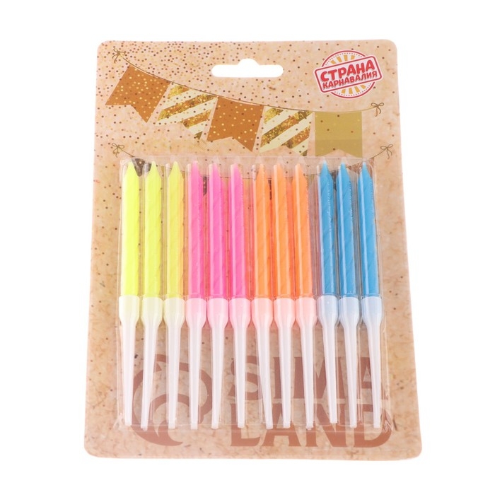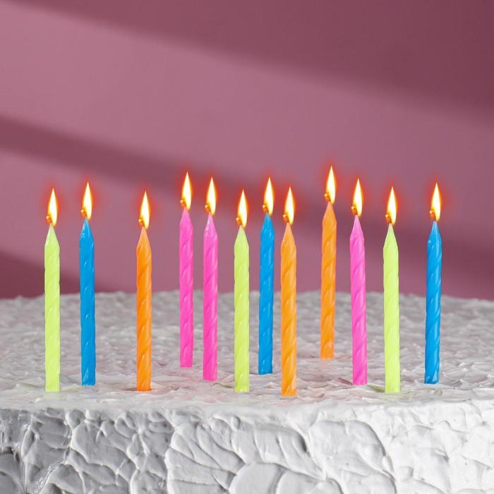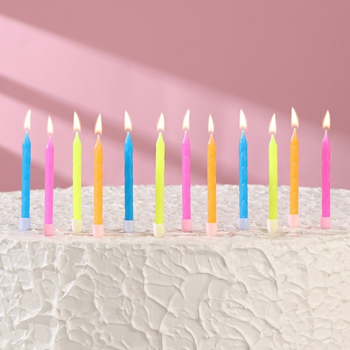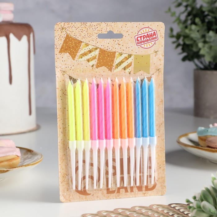 Свечи для торта "Неон", 12 шт, разноцветные, высокие, 10 см