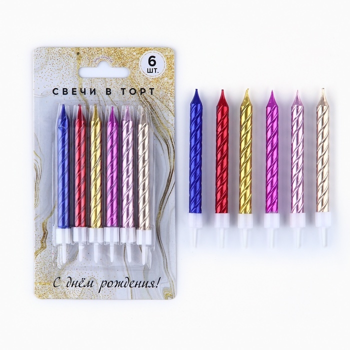 Свечи для торта, разноцветные, 6 шт., 9,5 х 0,9 см