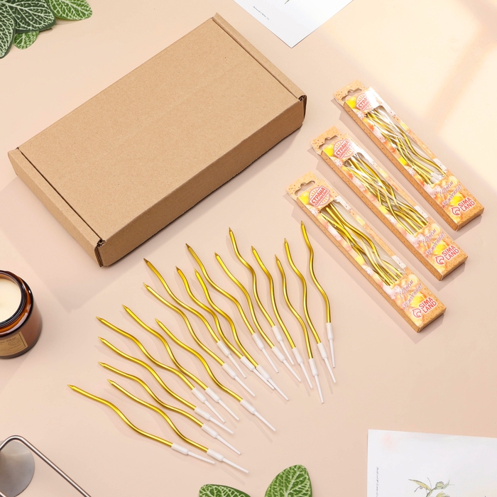 Свечи для торта витые "Серпантин",12 см, 18 шт, коктейльные, золото