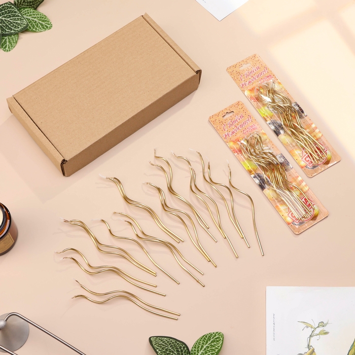 Свечи для торта витые "Серпантин", 15 см, коктейльные, золотистые, 20 шт,