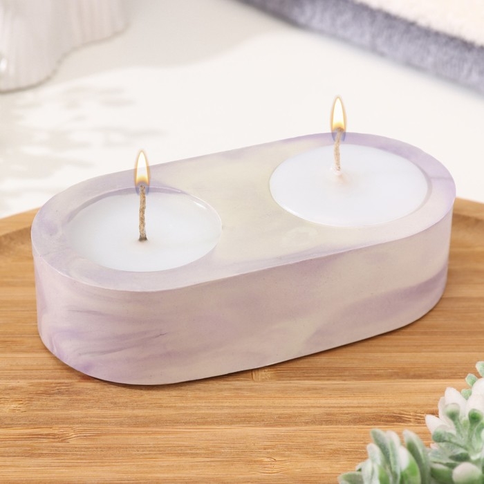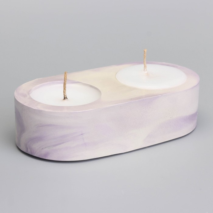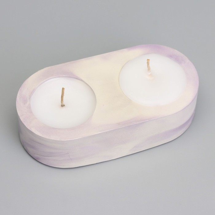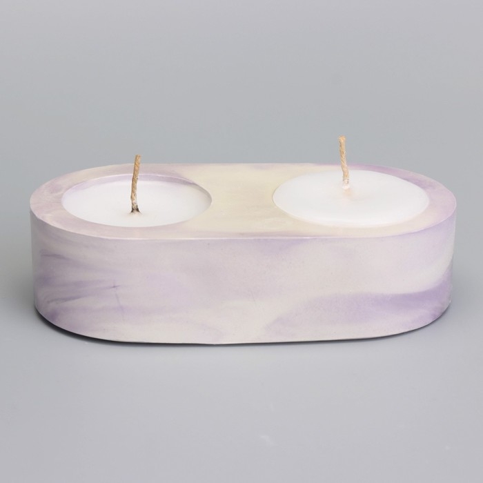Свечи "Мрамор" в овальном подсвечнике из гипса,12х6х3см, мрамор с фиолетовыми полосками