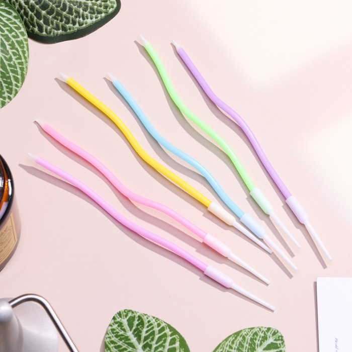 Свечи в торт коктейльные витые "С днем рождения", 6 шт, 16,5 см, разноцветные