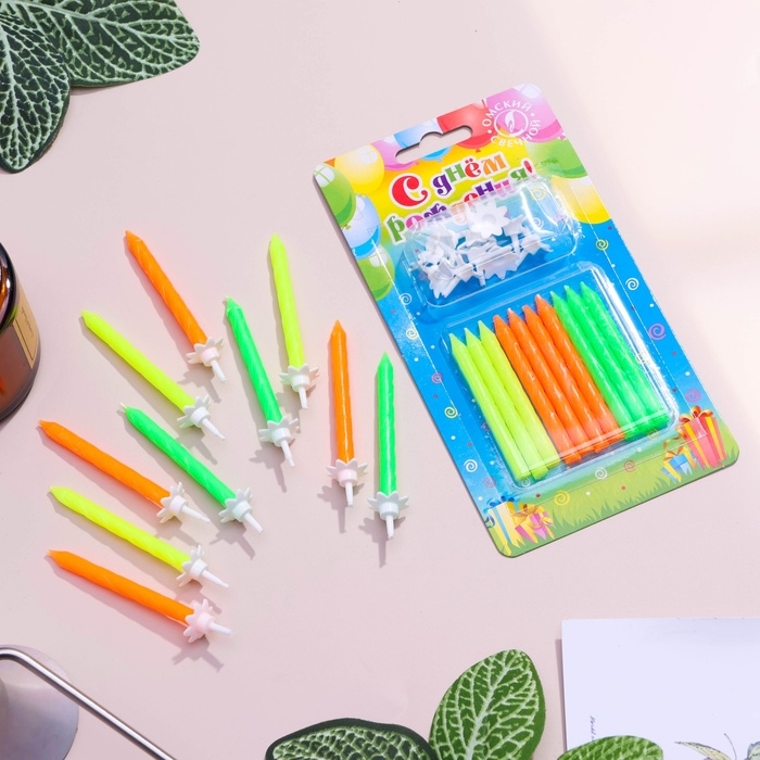 Свечи в торт "Красочные", 6 см, классические, набор 10 шт