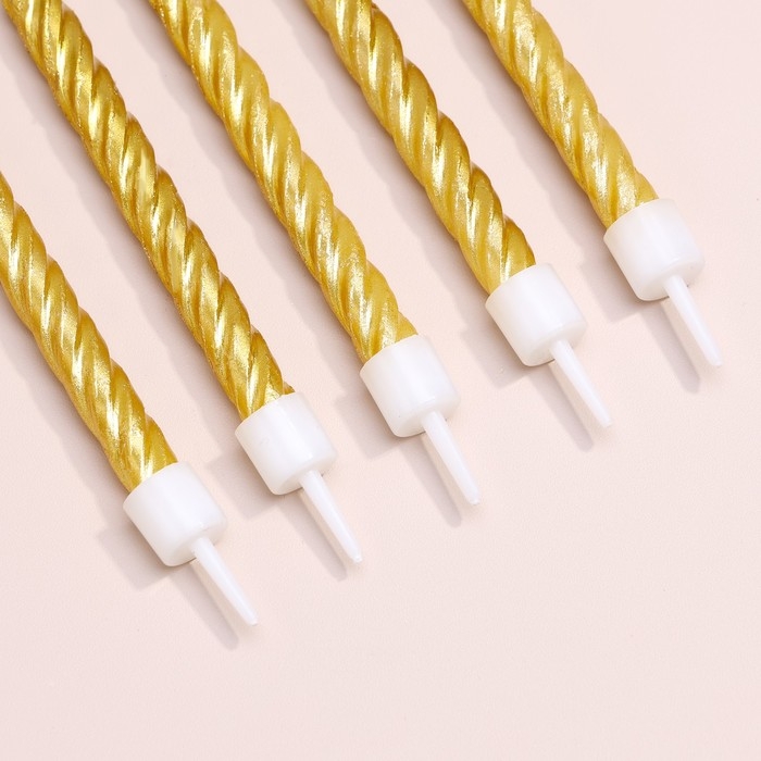 Набор свечи в торт "Спираль", 200шт, 5 см, золотой металлик