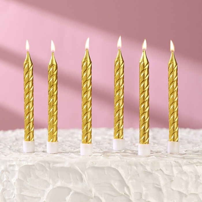Свечи в торт "Ройс", 6 шт, высокие, 13 см, золотой металлик
