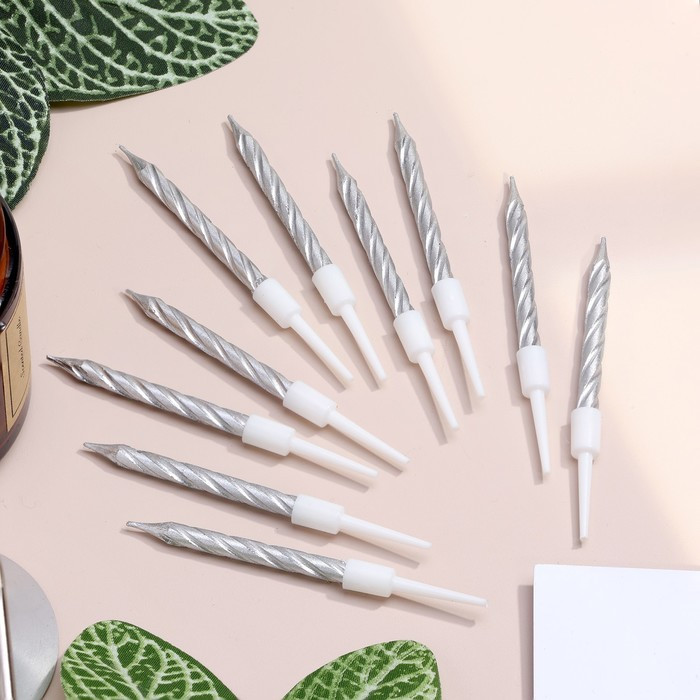 Свечи в торт "Спираль", 10 шт, средние, 5 см, металлик